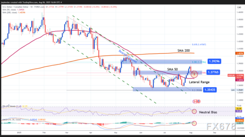 周四(8月7日)之前的四个交易日,美元兑加元连续下跌,回吐上周一半涨幅,反映出美元对加元走强的逐渐回落。这一走势是由市场对美联储货币政策预期的变化驱动的,这削弱了对美元的需求。与此同时,加拿大元因加拿大央行的中性立场和受控的通胀而受益,增强了其本币的稳定性。如果事态继续保持,美元兑加元在短期内可能继续承压。 央行动态 目前,美联储和加拿大央行的基准利率分别维持在4.5%和2.75%。然而,它们的利率曲线走势有望越来越分化。 加拿大央行在通胀回到2%的目标区间后采取了维稳态度,使其有空间暂时保持政策不变。相比之下,美联储面临更具挑战性的环境。